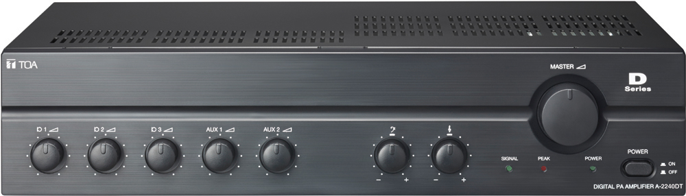 The A-2240DT is a range of high performance digital mixer power amplifier suited for broadcasting paging and/or background music in schools, retail shops, offices, factories, houses of worship and large function rooms.