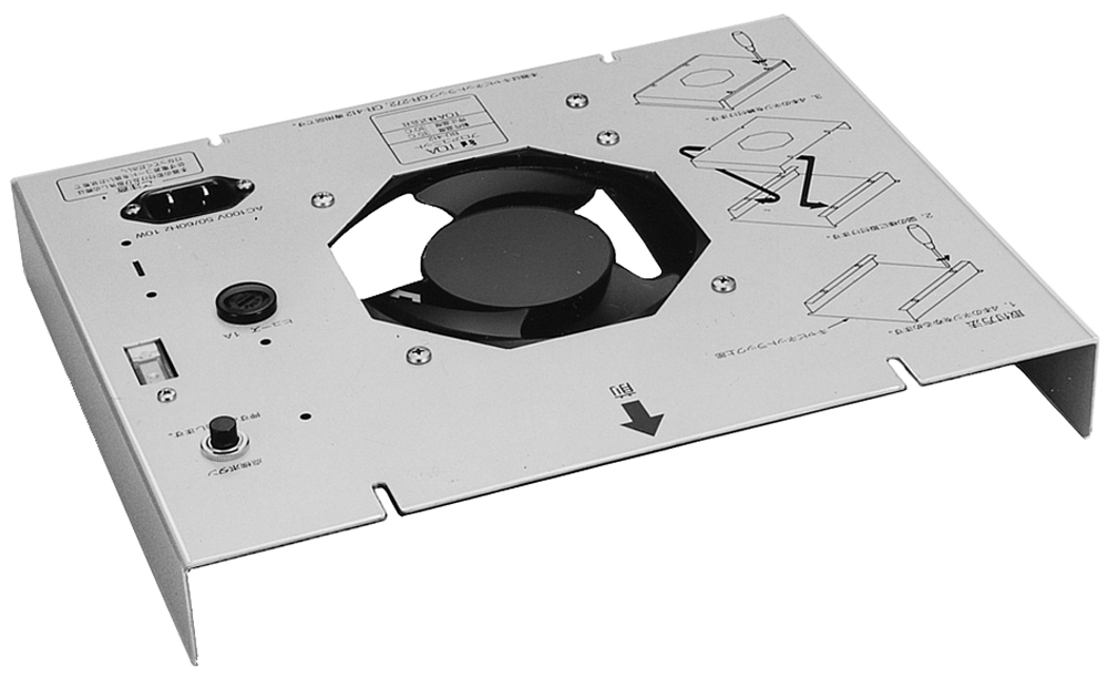 The BU-412 is a blower unit that is fixed to the top plate of the CR-273, CR-413 and CR-413-6 equipment racks.